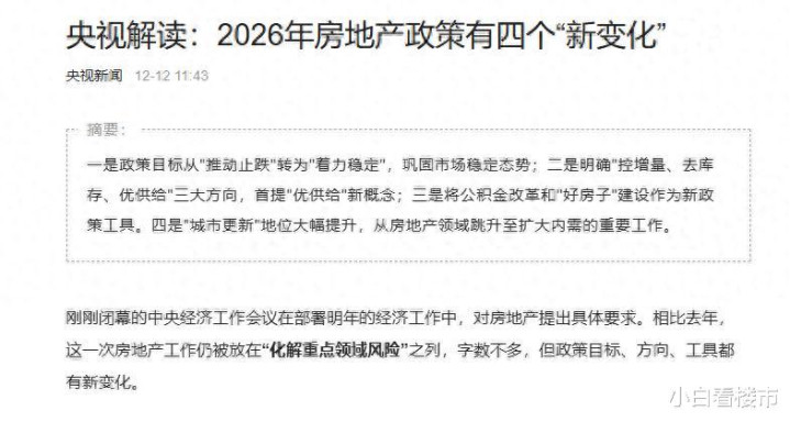 过去两年,房地产政策指向目标是“推动房地产市场止跌回稳”,这一次定调,从止跌转为着力稳定,凸显政策的核心是稳楼市,稳房价,意味着核心趋势是巩固当下的市场状态。