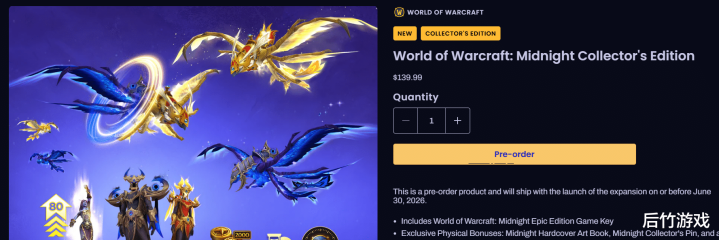 来自暴雪官网消息,《魔兽世界》12.0“至暗之夜”实体典藏版已开启预购,售价139.99美元,购买了典藏版的玩家将在美服时间12月2日开启家宅系统的抢先体验。