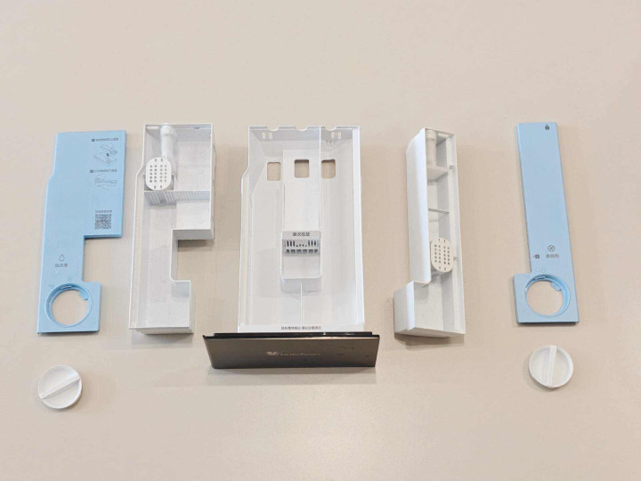 用过智能投放的人都懂,使用的时间一长,投放盒的边角、缝隙里会积攒洗涤剂残渣,黏糊糊的,还容易发霉。普通一体式的投放盒,只能拿水冲一冲,很多死角根本洗不到。而模块化的设计,像乐高一样拆开,每个角落都能用水龙头直接冲,没有清洁死角,这才是真正让人省心的设计。