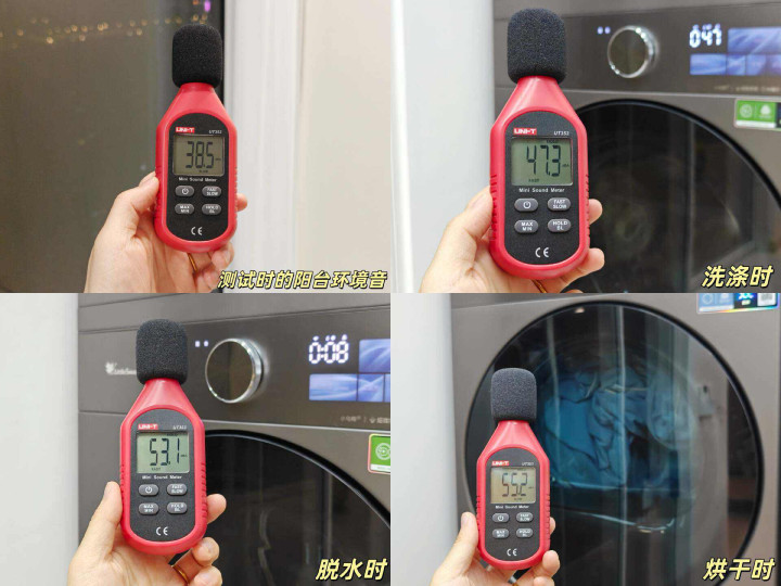洗衣机的噪音表现,直接影响日常使用的舒适度。为此,婉儿特意对小乌梅5.0在不同工作阶段进行了实测。在阳台环境音38.5dB的条件下,测得洗涤阶段:47.3dB,脱水阶段:53.1dB,烘干阶段:55.2dB。