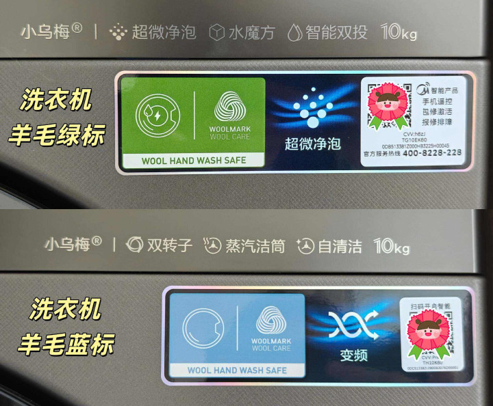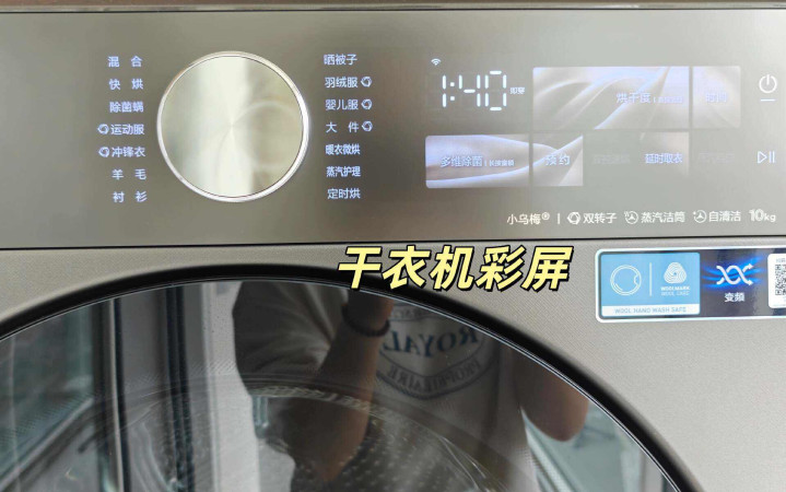 小乌梅5.0洗衣机拥有羊毛绿标认证,干衣机也获得了羊毛蓝标认证。像羊毛衫、羽绒服、真丝睡衣这类特殊面料,选择专属烘干程序即可,筒内温度稳定在42℃左右,不用担心烘坏衣物。