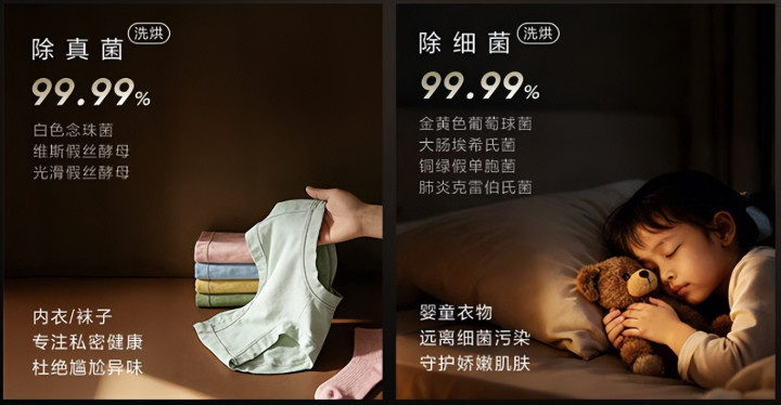 小乌梅5.0洗烘套装,针对有娃养宠家庭的痛点给出了务实的解决方案。它通过了中卫安特护级认证,在除菌除螨上下足了功夫。除了高温净洗、纳米银离子和UV紫外线深度消毒外,烘干环节同样也不含糊,循环暖风搭配多维度除菌烘,让除菌过程贯穿整个烘干流程,洗烘双保险,把细菌、真菌、病毒都做到99.99%去除,除螨虫更是接近100%。洗烘后的衣物,拿出来就能直接穿,没有异味,也没有细菌和螨虫残留。